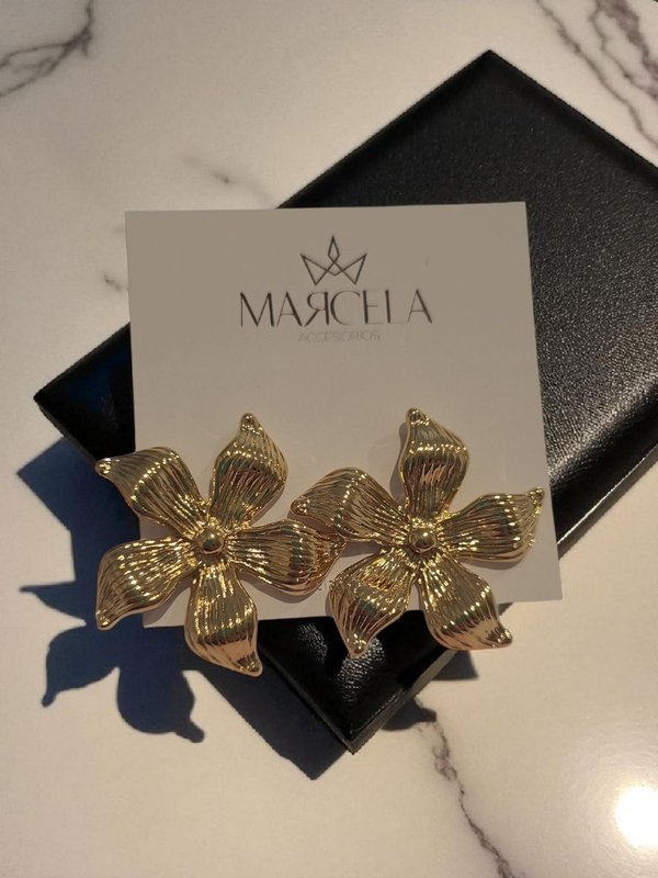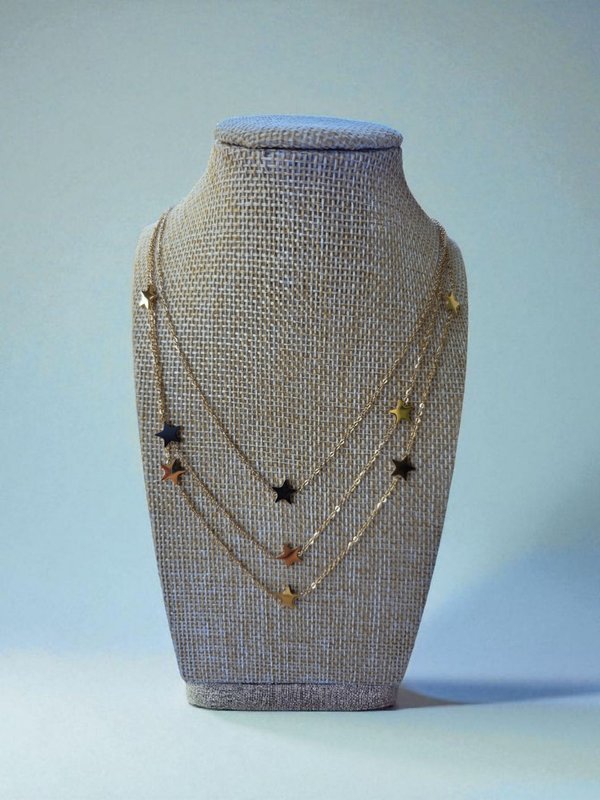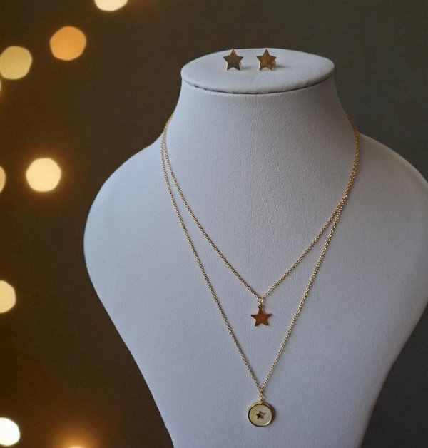 Conjunto cadena doble con estrellas y aritos. Acero dorado.