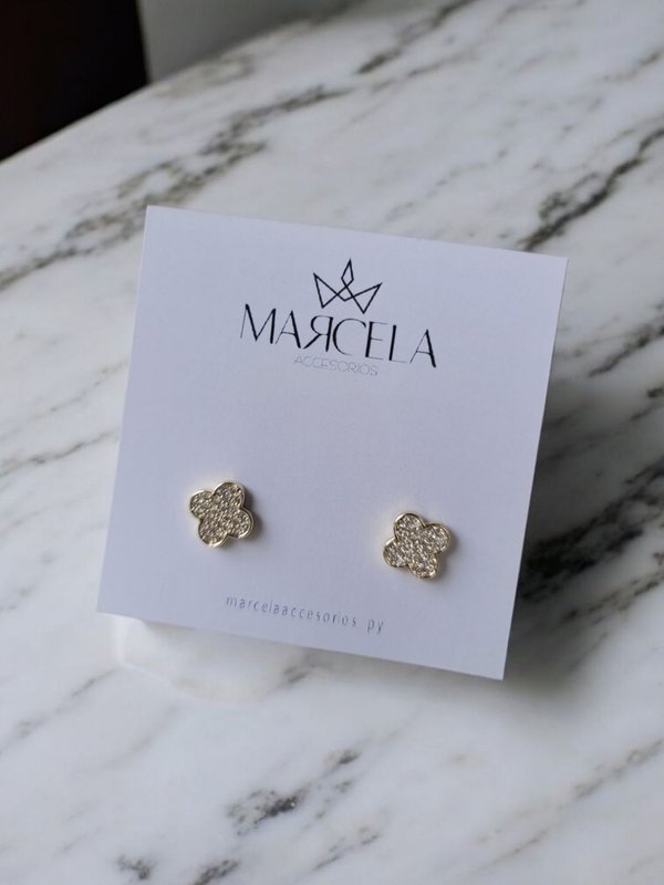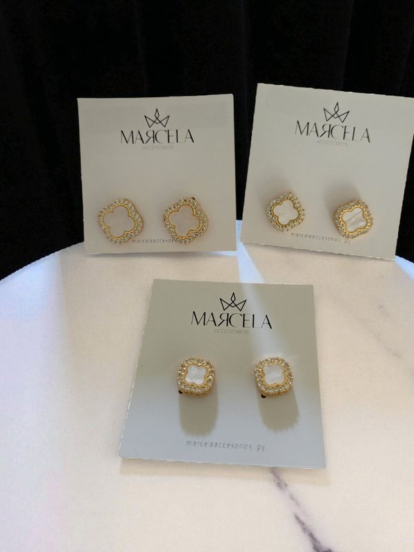 Aro trebol 4 hojas con nacar y strass. Acero dorado.
