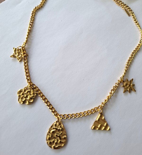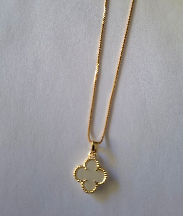 Conjunto de cadena con aros trebol 4 hojas negro. Acero dorado.