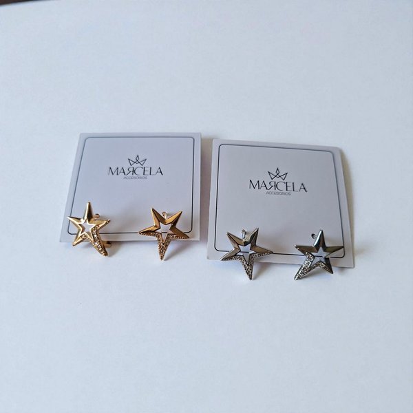 Aro argolla con estrella y strass. Acero dorado o plateado.