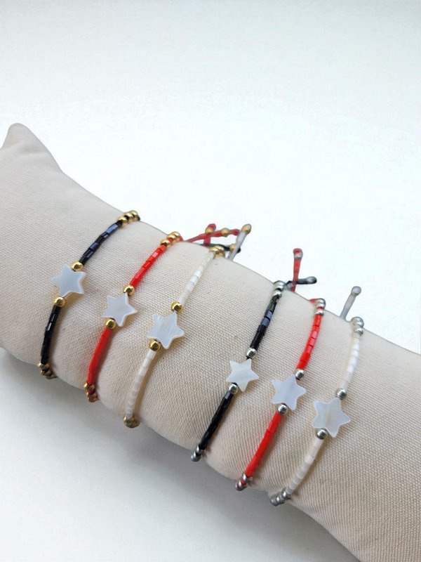 Pulsera mostasillas miyuki y estrella de nacar. Acero.