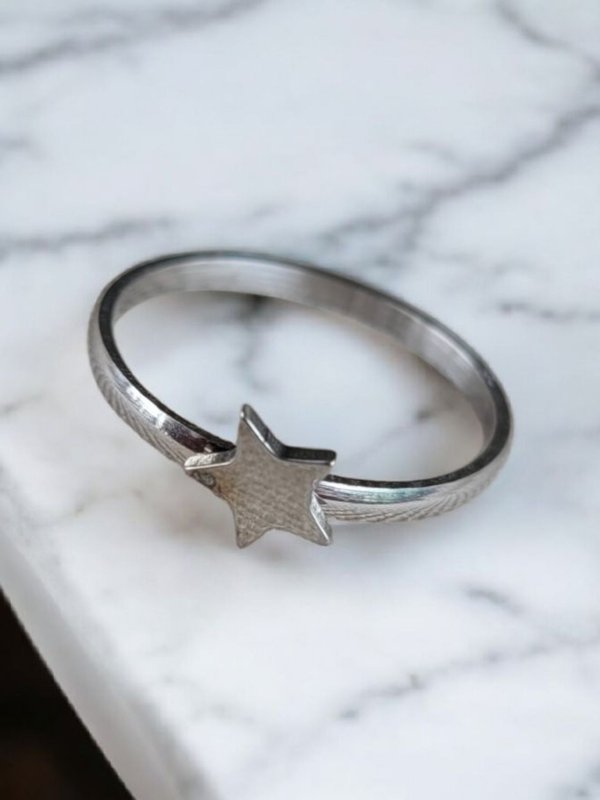 Anillo ancho con estrella calada. Nro 10. Acero plateado.