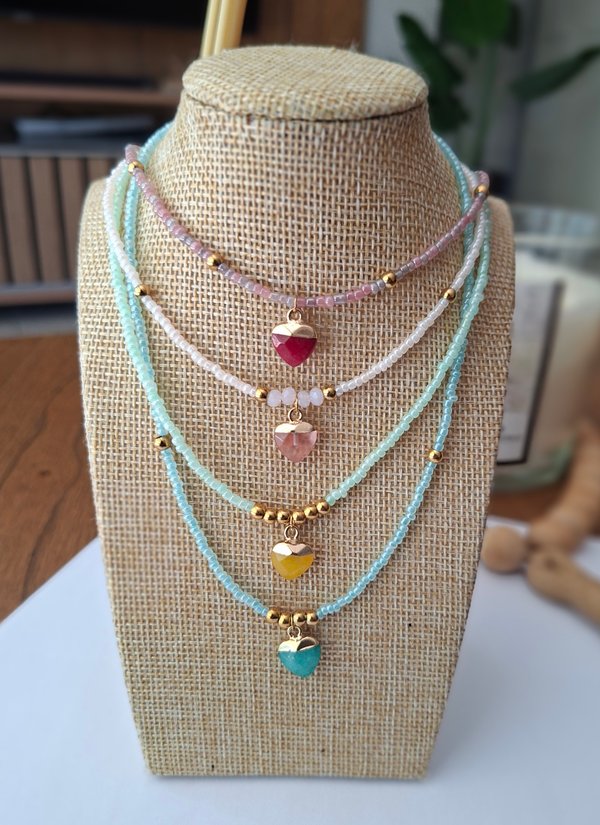 Conjunto de cadenita y aros punto de luz en forma de corazón. Enchapado en oro.