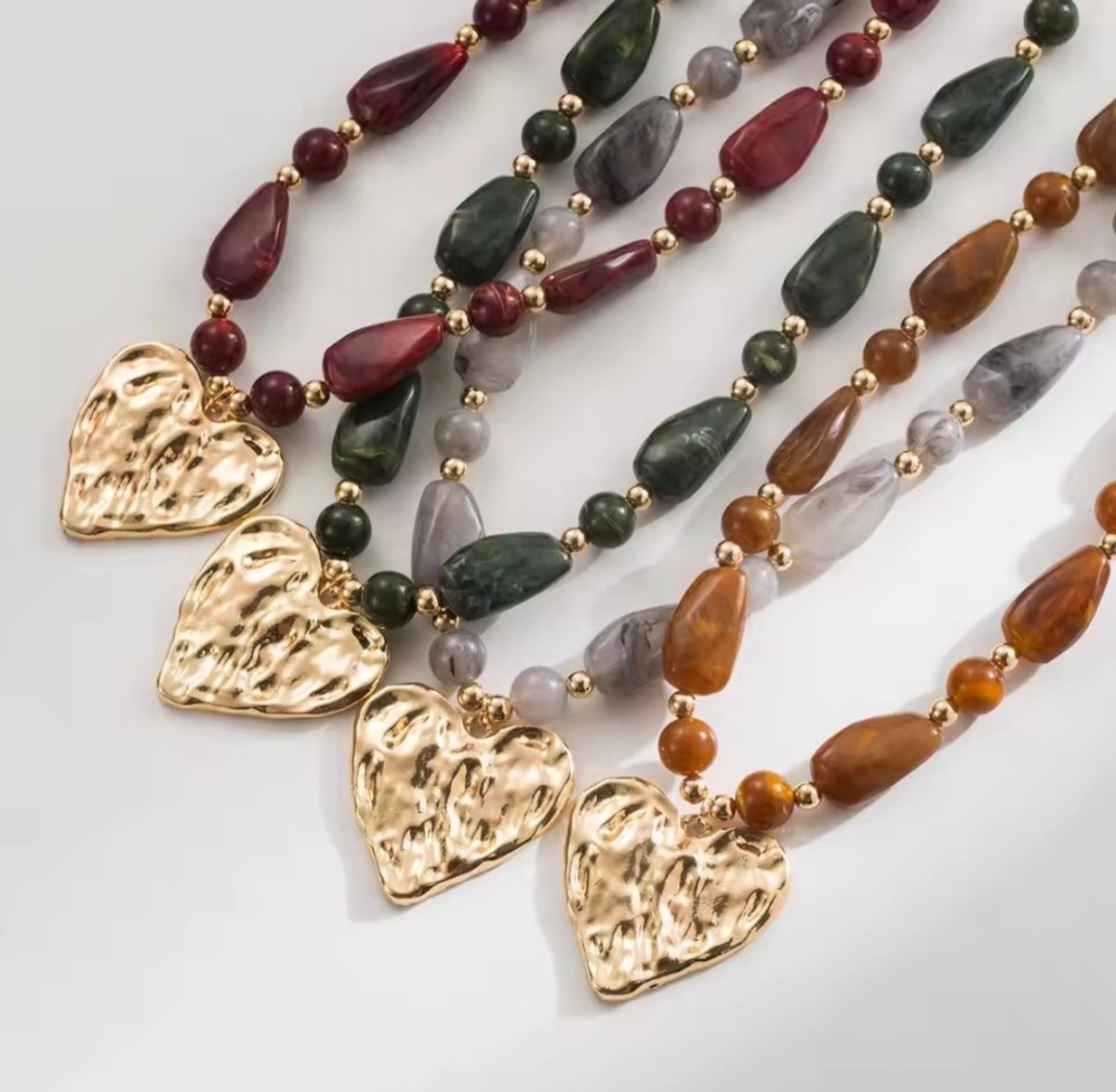 Collar con piedras y corazon dorado. Bijouterie.